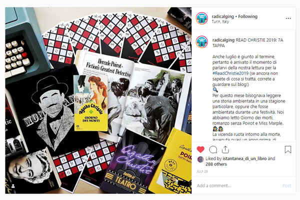 Of course! The challenge itself was set up by yourselves at Agatha Christie Ltd, but putting our own Italian twist on it made a big the difference for our platforms too. We are having so much fun seeing which books people are choosing to read this year, their unique pictures with many different props hinting at the plot and the hilarious way they react when they discover whodunnit (all using #ReadChristie2019). We are delighted when we see somebody converted to Christie’s words (or worlds), and we are even happier (not to mention anxious) when people decide to read one of our favourite Christie stories! We wait eagerly to hear from them and see if they had our same reaction.